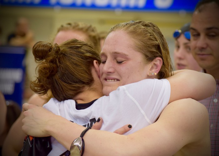 A lot of tears are shed on the pool deck at championship meets. Swimmers may miss their time goal, they may get 17th or they might have lost a team title that they spent the whole season dreaming of.